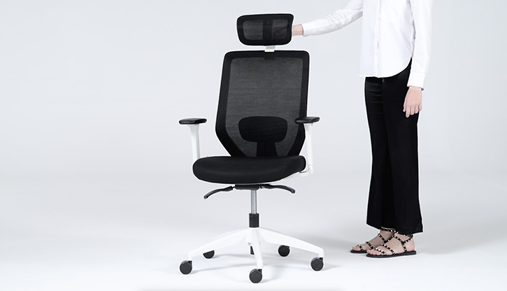 - Encosto em rede respirável preta e ultrarresistente com efeito tecido que oferece um adequado apoio das costas sem deformações.