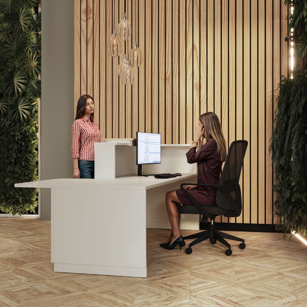 O balcão adaptado Duomo é a solução ideal para escritórios e comércios que procuram um design funcional, elegante e versátil. A mesa de atendimento pode ser colocada à direita ou à esquerda, adaptando-se perfeitamente a qualquer espaço.